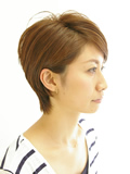 モデルのYukieさんは「髪が多く、強いクセ毛がコンプレックス」と言うことなので、ショートの縮毛矯正特有のツンツン感がでないように注意して、縮毛矯正をかけました。